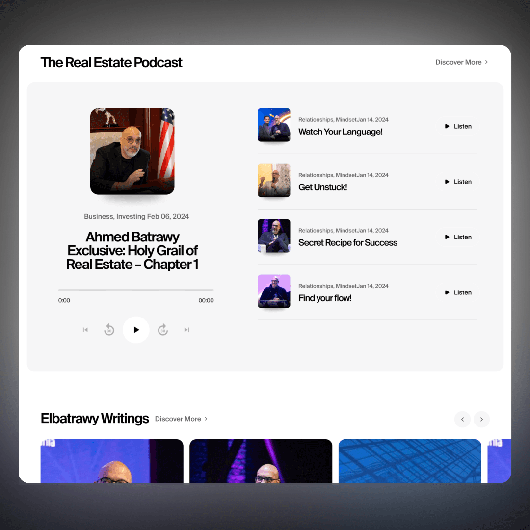 We crafted a digital presence that reflects Ahmed Elbatrawy’s professional legacy a visionary real estate expert with over 25 years of industry leadership, multiple groundbreaking ventures like Arab MLS and the Official Egyptian Real Estate Platform, and a track record of more than $1 billion in transactions.