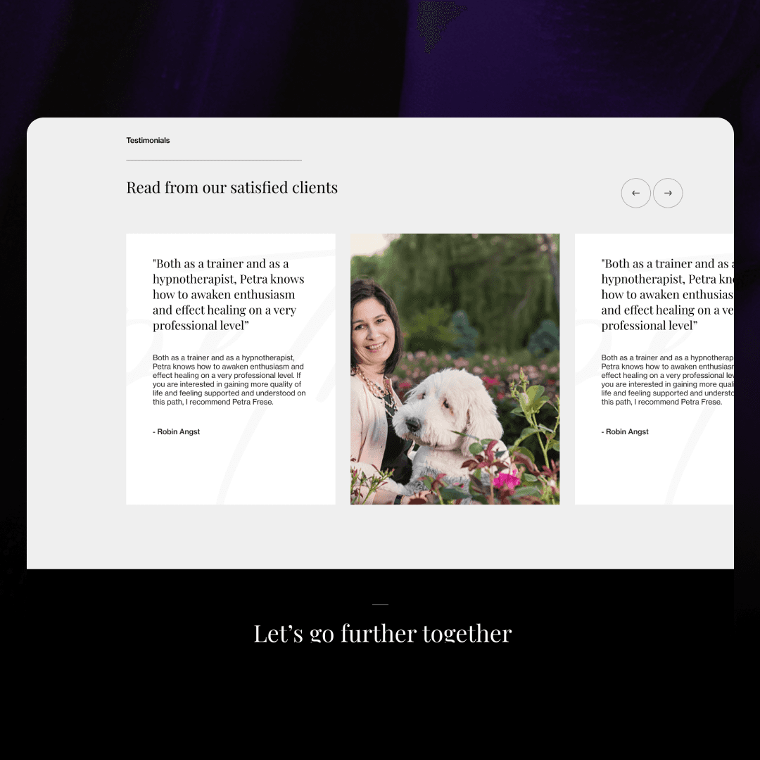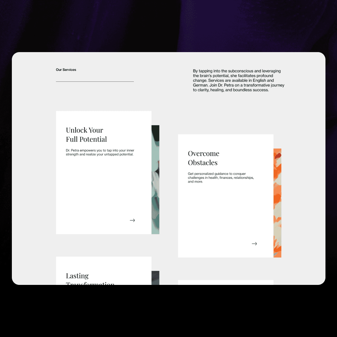 Petra is a doctor and professional coach, but she didn’t have a website that really reflected who she is. Her online presence felt scattered and didn’t show her personality, professionalism, or the depth of her experience.